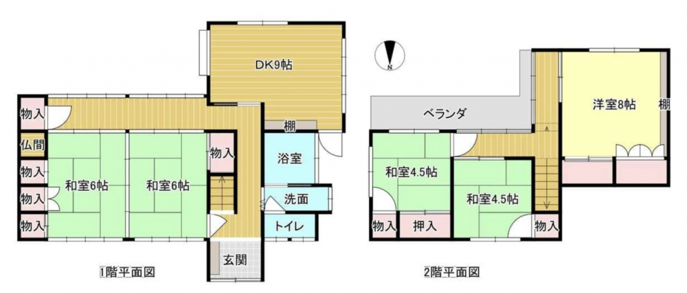 5DKの広々とした間取りで、静かな住宅地に位置する木造2階建て住宅です。
